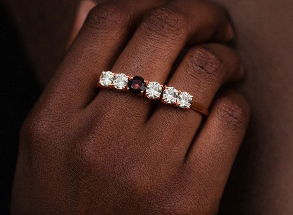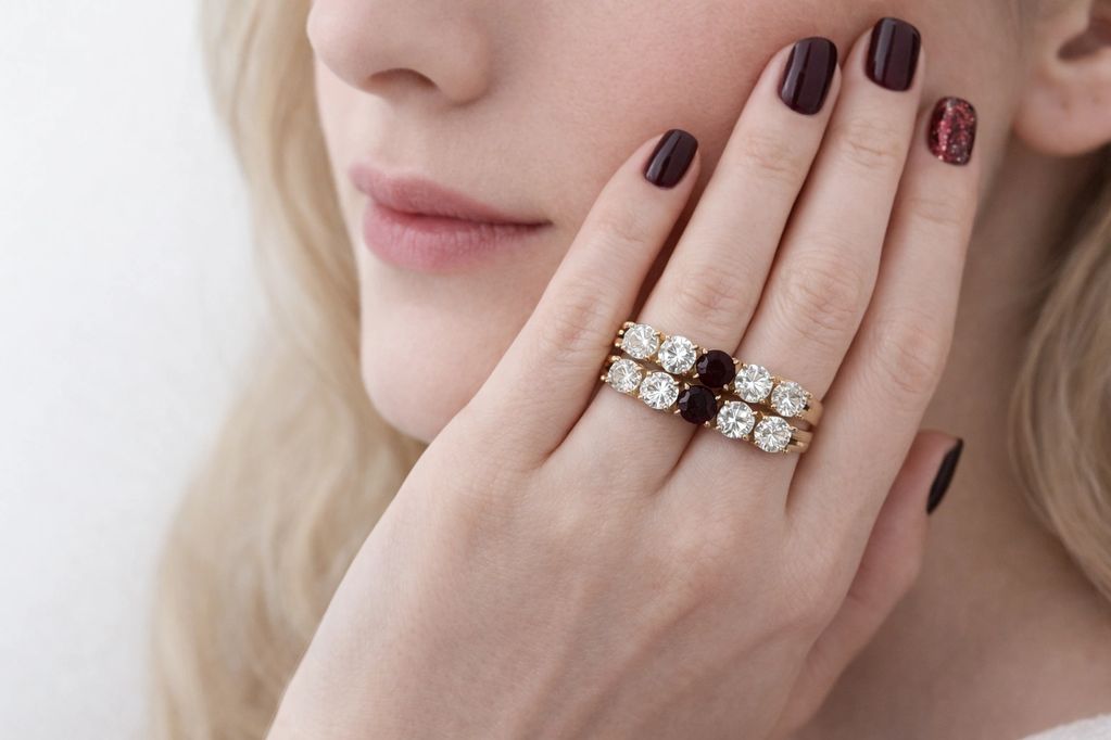 ÆDOSS pieces are crafted in 18k gold. Lab-grown diamonds create rhythm and structure along the form. One natural gemstone — color change garnet— introduces singularity and character.